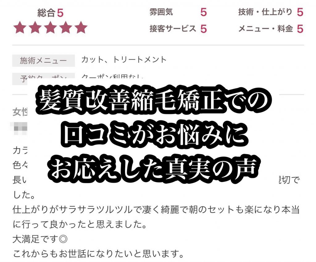 髪質改善縮毛矯正 でのご対応させていただいた、 お客様のお声などは、 こちらでご確認していただけます↓↓↓