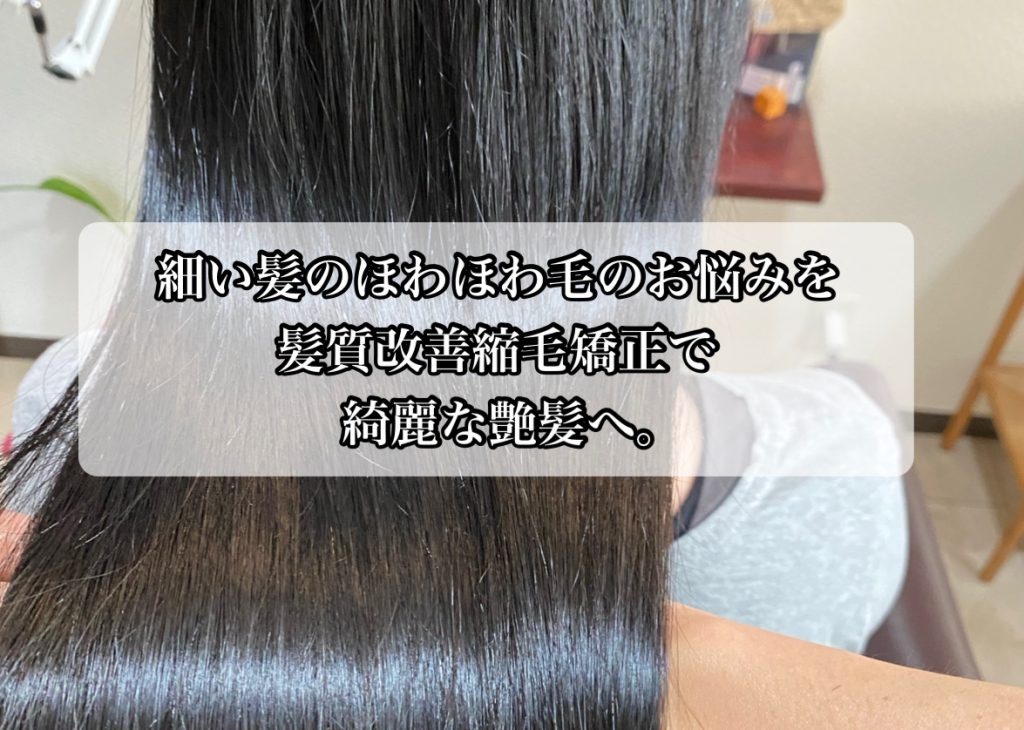 細い髪のほわほわ毛のくせでお悩みの方の 髪を綺麗に髪質改善縮毛矯正させていただきます