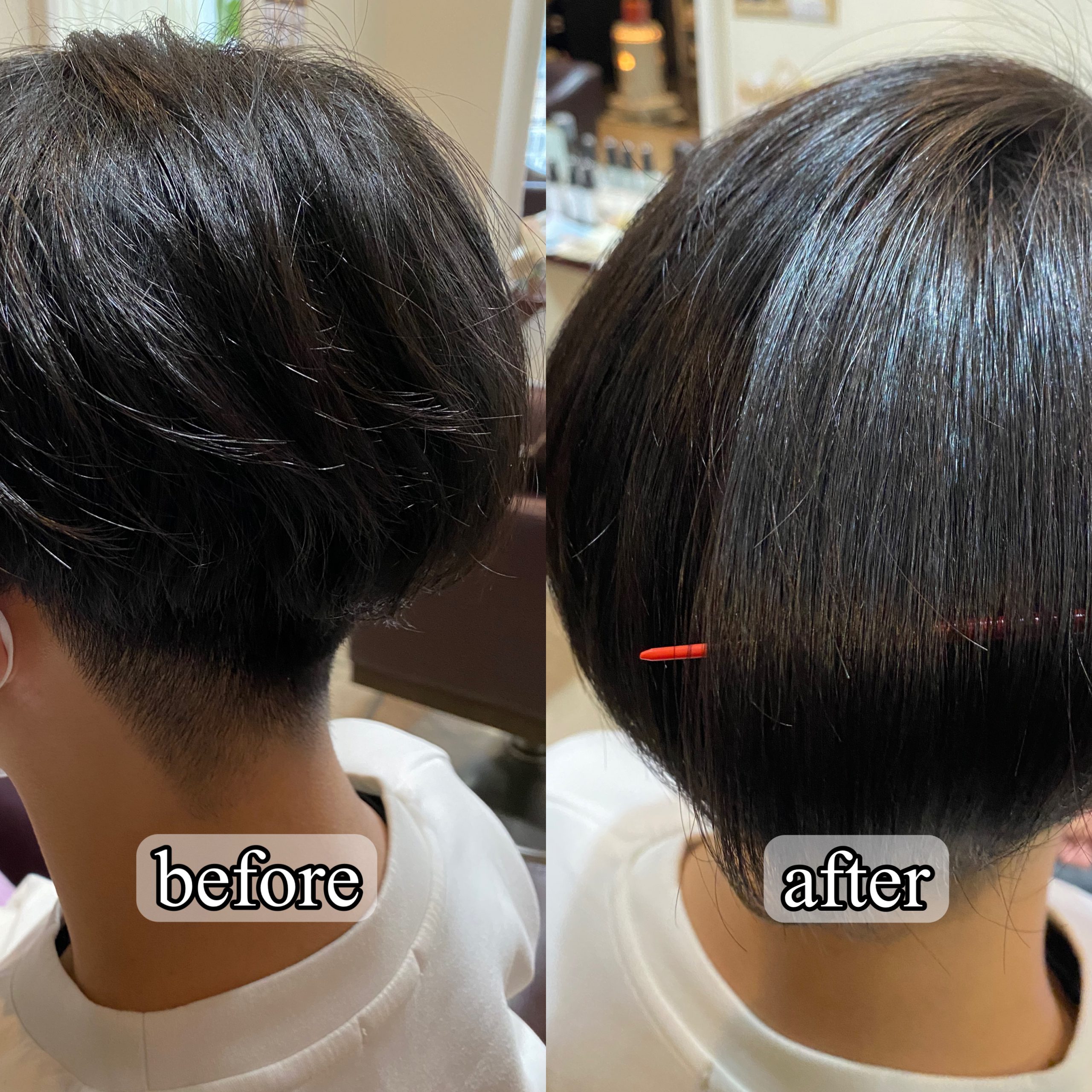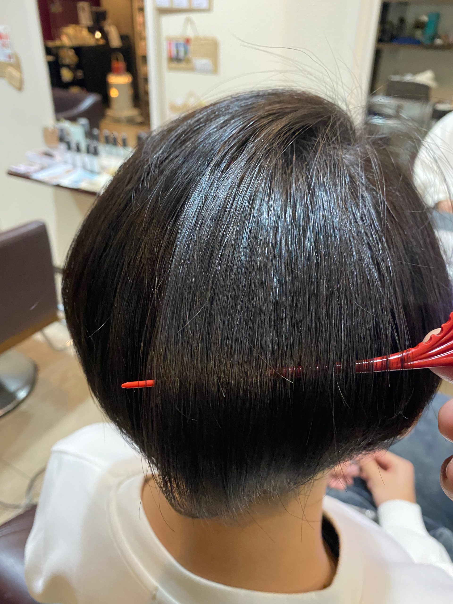 前髪以外は、縮毛矯正を過去にされておられなかったのですが、その境目のくせがスタイルに逆に気になるポイントができてしまっていて、その改善。