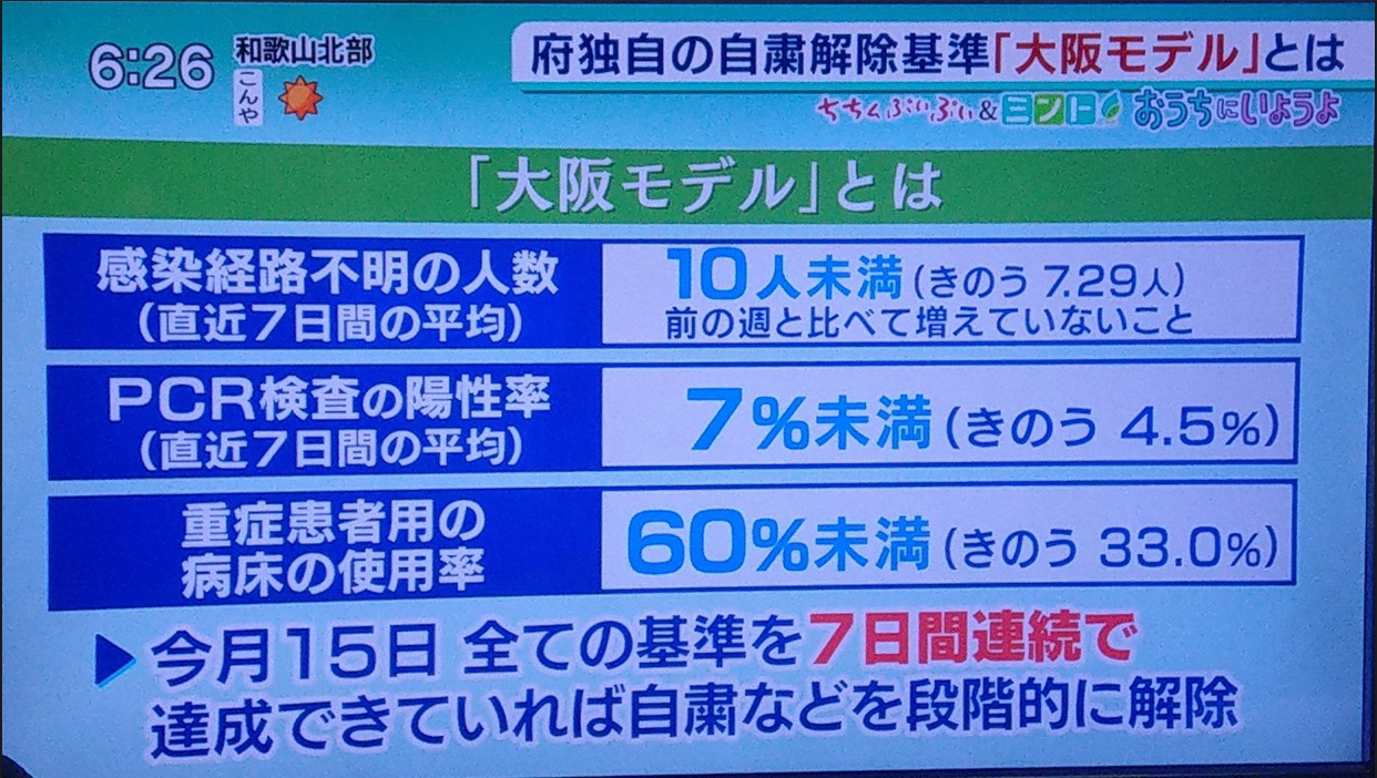 5月15日 すべての基準を7日間連続で達成できていれば自粛などを段階的に解除 それに伴いまして、