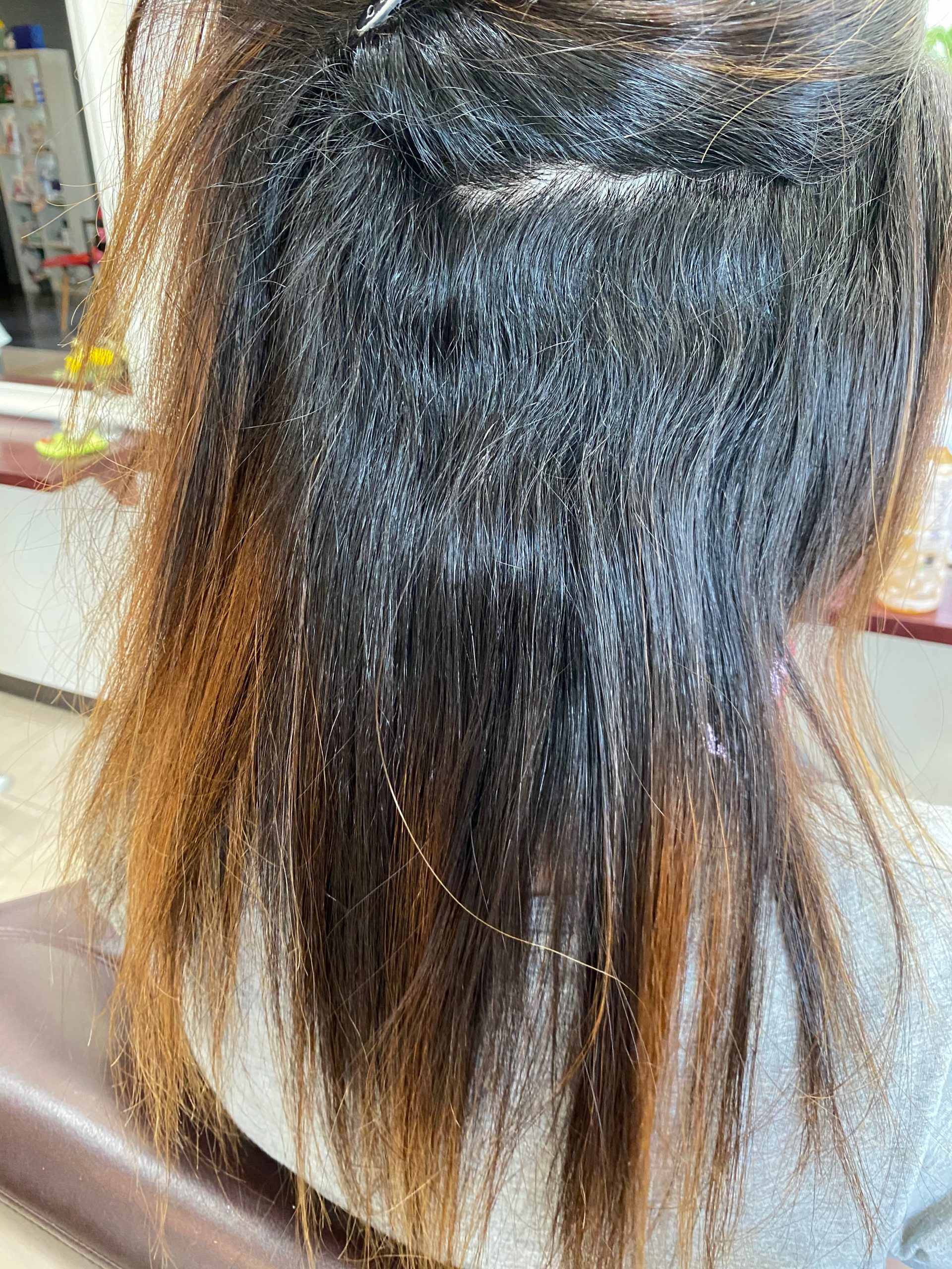 ミディアの長さの縮毛矯正です。