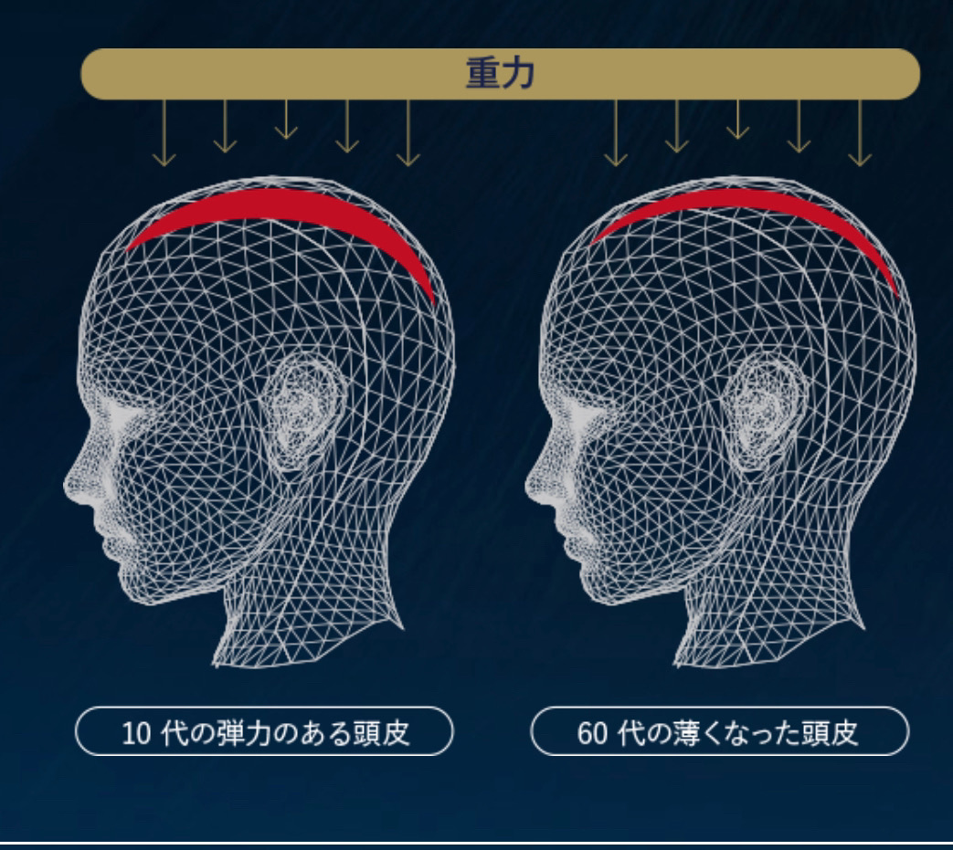 頭皮は年齢により薄く痩せていき、重力に逆らえず下がって、凝り固まってしまうのです。