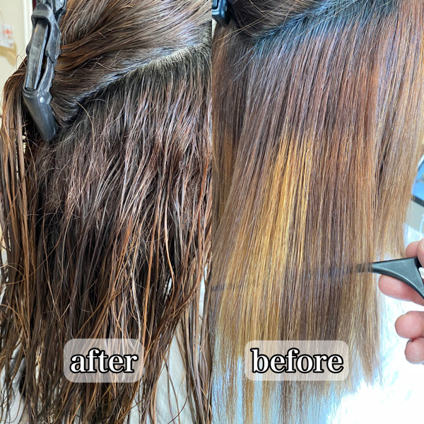 『 ブリーチした髪を 縮毛矯正をすると髪がちぎれる』 と、思ってました。 と言って、他店でお断りされて 縮毛矯正の失敗を覚悟して 当店ピアルに ご来店いただきました。