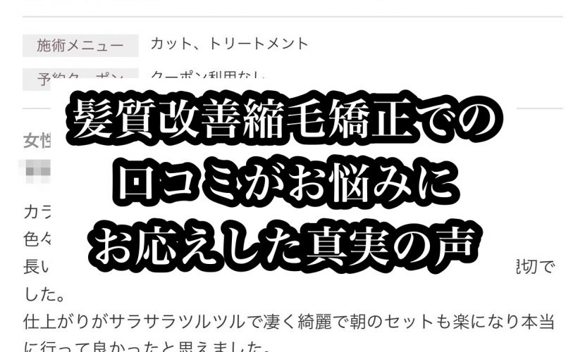 カウンセリングで髪質改善縮毛矯正にメニューチェンジされ、施術を受けていただいたお客様の口コミをいただきました。