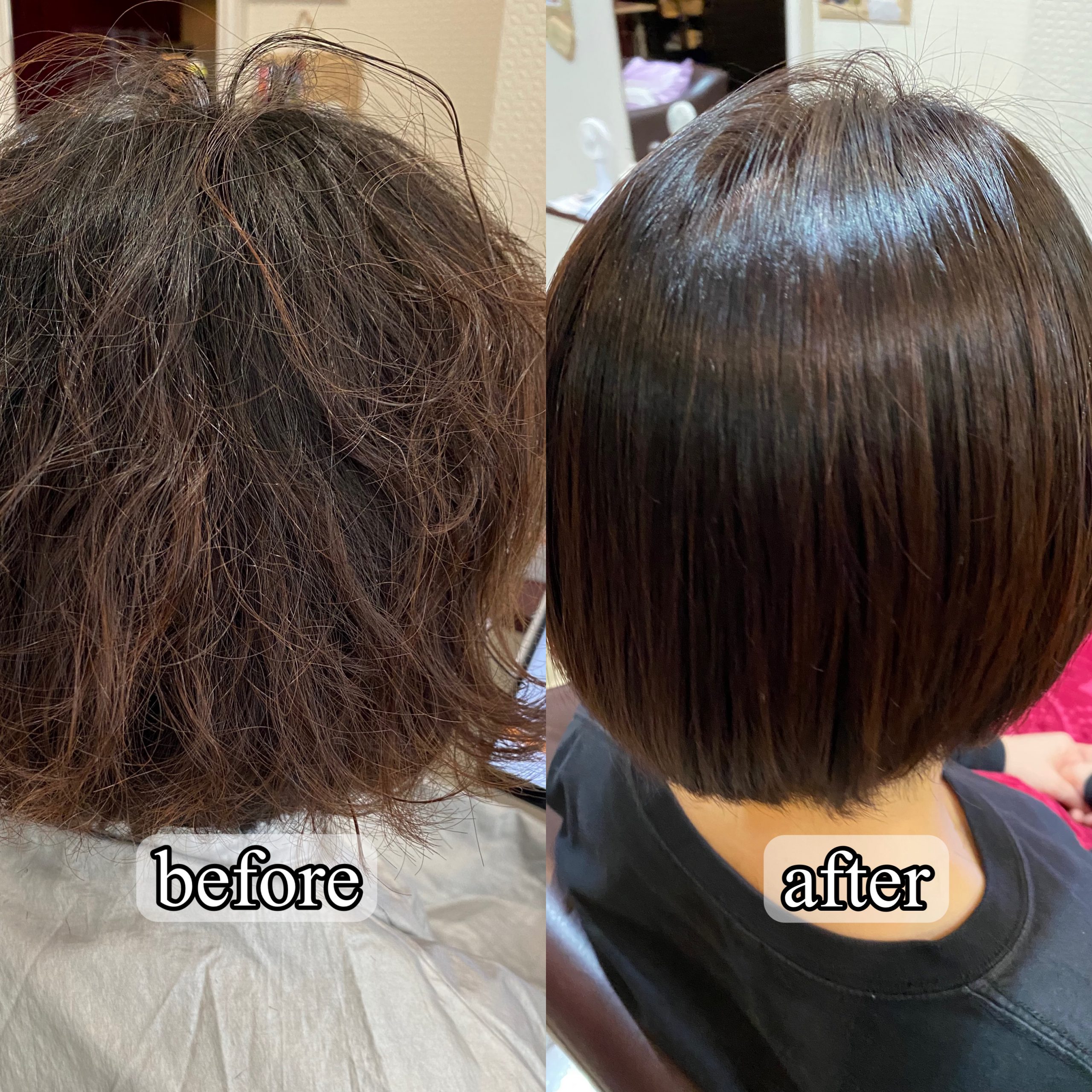 お家でもお手入れがしやすいように、 “乾かすだけでキレイ”をつくらせていただいてます。 ショートヘアでくせが気になる方は、一度ご来店くださいませ。 あなただけのしっかりカウンセリングを行い施術させてます。 ショートヘアでこの仕上がりの丸さが縮毛矯正でできるんだ。とぜひ驚いてください。ショートヘアのお悩みをお気軽にご相談ください。